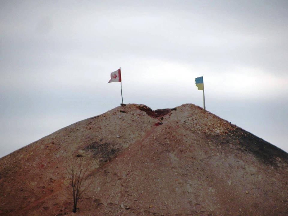 Флаг Канады и Украины на терриконе между Горловкой и Торецком