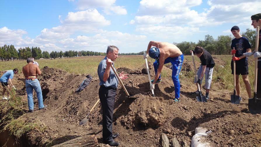 Мер Маріуполя в костюмних бруках та тухлях копає надувний окоп